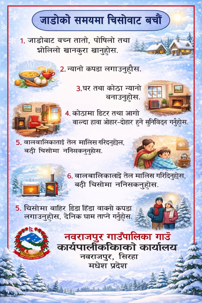 सिरहा । जिल्ला प्रशासन कार्यालय सिरहाले राहदानी (पासपोर्ट) वितरणलाई सहज बनाउन नयाँ व्यवस्था लागू गरेको छ। अब सेवाग्राहीले राहदानी घरमै प्राप्त गर्न सक ...